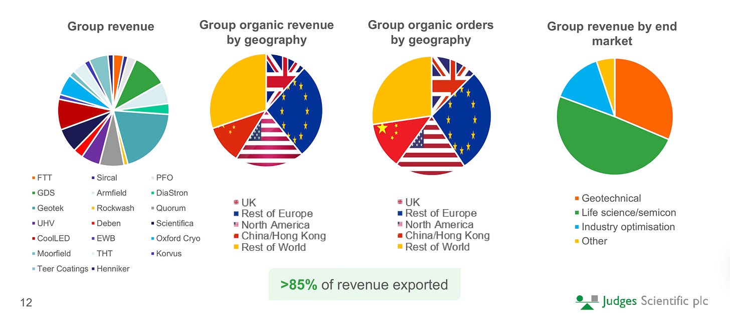 Looking deeper at the portfolio companies, they design and produce (typically outsourced to reduce capital intensity) a wide range of instruments that diversify the business across end market use cases (Life science (40-50%), Geotechnical (~25%), Industry optimisation (~20%), and compliance and testing).