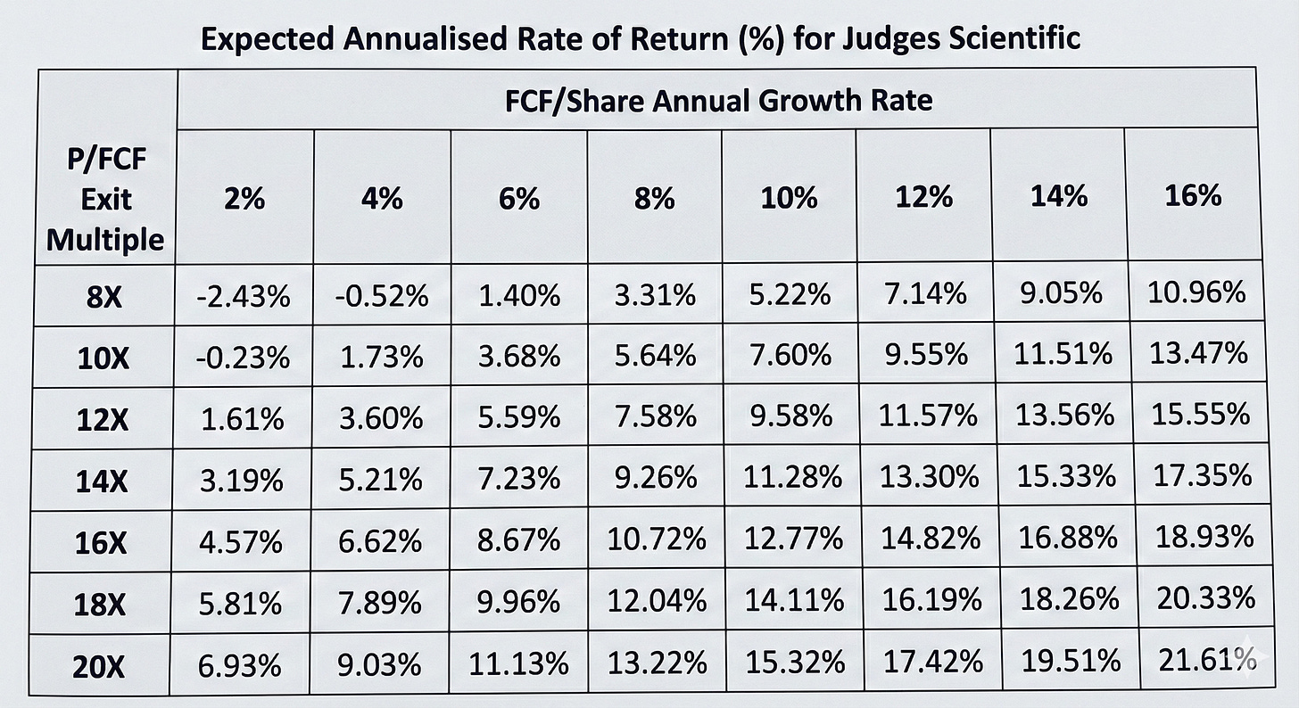 The theoretical upside for Judges could be significant, providing they can continue to re-invest the majority of their FCF into further acquisitions at a similarly high rate of return.